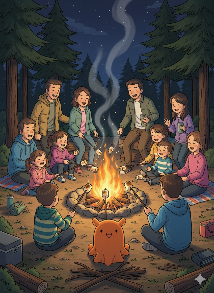 「きょうは、すてきな夜だな。また、みんなとキャンプしたいな。」