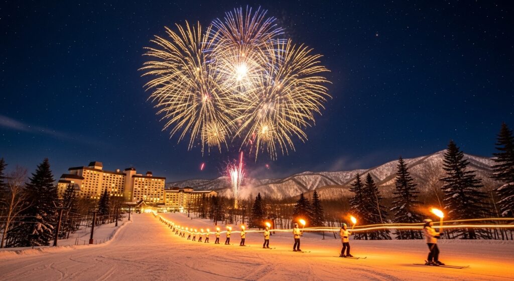 《ルスツリゾート 大みそか花火大会&たいまつ滑走》